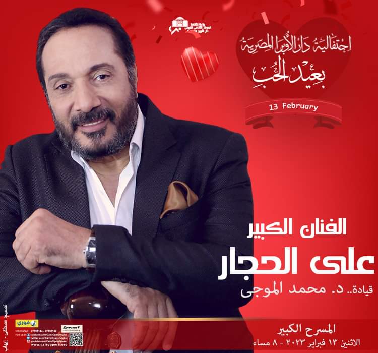 من المقرر أن يحيي النجم الكبير علي الحجار حفل غنائي كبير في دار الأوبرا المصرية يوم الإثنين الموافق 13 فبراير على خشبة المسرح الكبير، في تمام الساعة الثامنة مساءًا، بقيادة المايسترو دكتور محمد الموجي.