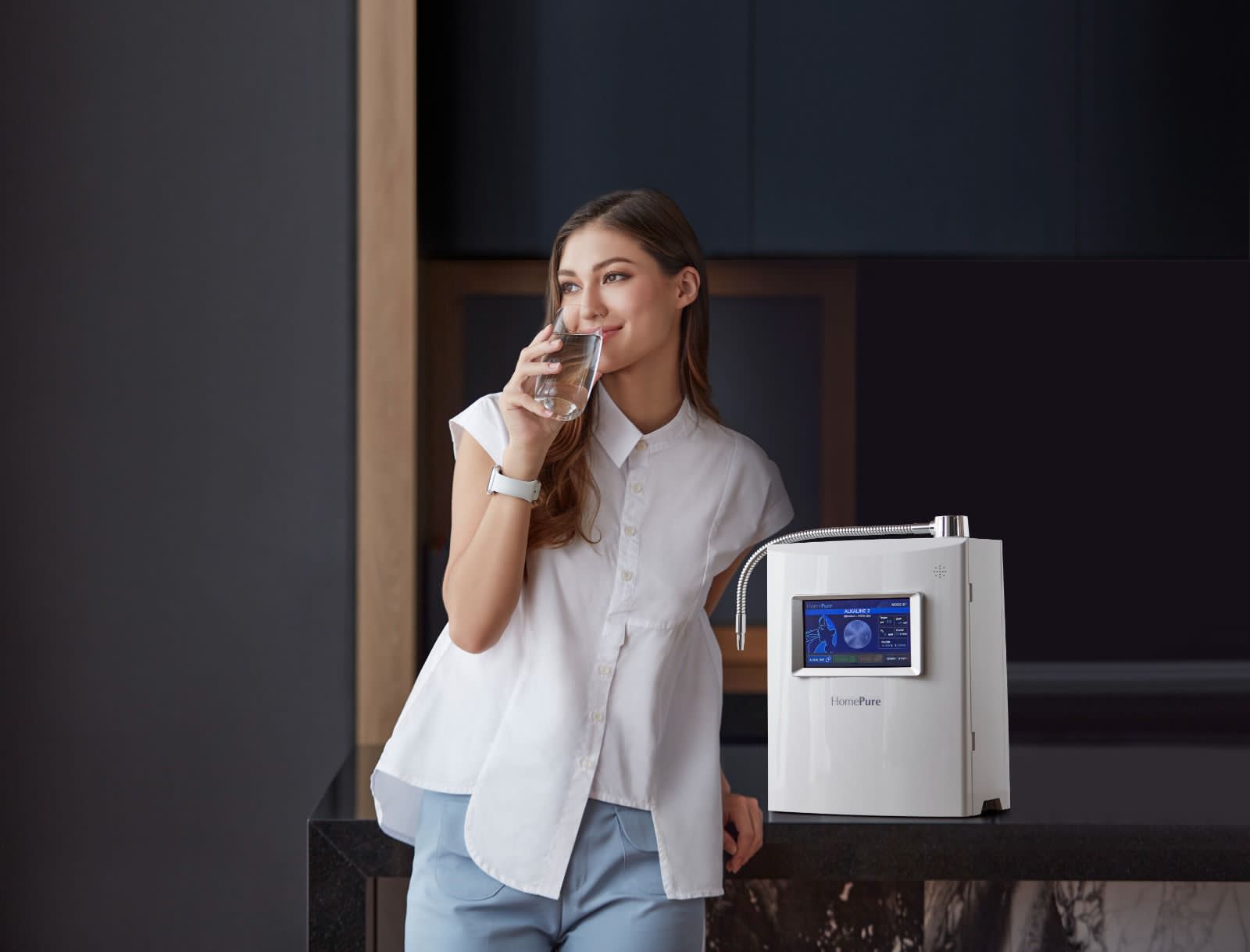وأكد أن جهاز HomePure Viva ينفرد بتصميم مسطح أنيق وعصري يندمج مع ديكور المطبخ بشكل مثالي، ويتميز بشاشة تفاعلية ملونة تعمل باللمس، كما يصدر الجهاز تعليقات صوتية متعددة اللغات، مع وضعيات ذكية مبرمجة مسبقاً، تجعل منه الجهاز الأكثر سهولة للاستخدام من نوعه، ومع إمكانية الاختيار من 11 نوعاً مختلفاً من المياه القلوية، يمكن للمستخدمين تخصيص مياه الشرب لتلبية احتياجاتهم اليومية، حيث تقوم الوضعيات الذكية للجهاز بتخصيص درجة الحموضة للماء لأغراض متعددة منها على سبيل المثال: