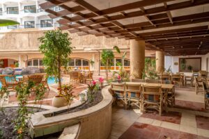 ويتميز الفندق بموقعه المميز بشارع الهرم الرئيسي وقربه من اهرامات الجيزه والمتحف الكبير ويحتوي الفندق علي ٣٧١ غرفه و١٩ جناح و١٢ جناح ازل كما يضم الفندق قاعه حفلات تتسع لعدد ٢٥٠ فرد مجهزه باحدث التجهيزات اللازمه من الصوت والاضاءة والديكور لاستقبال وتنظيم كافه الافراح والحفلات او المؤتمرات المحليه و الدوليه ولها مدخل اضافي خاص من خارج الفندق بالاضافه لقاعه اجتماعات لرجال الاعمال تتسع لعدد ٤٠ فرد وتتطل علي حمام السباحه الرئيسي وعن تنوع المطاعم بالفندق يوجد المطعم الرئيسي الذي يقدم مجموعه من الاطباق الشرقيه المميزه والمطعم اللبناني والمطعم الايطالي واللوبي بار ببهو الفندق ويوجد حمام سباحه وجاكوزي لراحه النزلاء كما يوحد جراج يتسع لنحو ١٠٠ سياره.