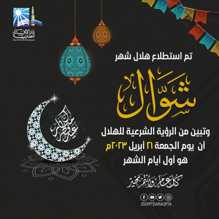 أستطلعت دار الإفتاء المصرية هلال شهر شهر شوال وتبين من خلاله أن غدًا الجمعة بإذن الله تعالى أول أيام شهر شوال، أول أيام عيد الفطر المبارك.