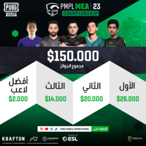 وستكون نسخة هذا العام أكثر تشويقاً بفضل مجموع الجوائز الضخم، والذي يصل إلى 150 ألف دولار أمريكي. وستخوض الفرق المتنافسة المعارك الملحمية للتنافس على لقب البطولة ونصيب الأسد من قيمة الجائزة. وستضمن الفرق الفائزة أيضاً التأهّل لبطولة ببجي موبايل العالمية القائمة على الدعوة 2023، مما يعزز مكانتها بين الفرق المحترفة إقليميًا وعالميًّا.