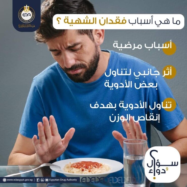 وأوضحت هيئة الدواء المصرية بعض أسباب فقدان الشهية ومنها: