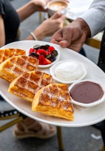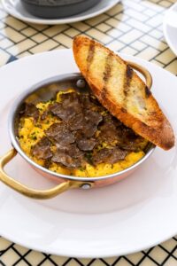 تشمل أطباق الإفطار طبق البيض المخفوق مع فطر الكمأة، والشكشوكة اللذيذة بلحم العجل المقدد، وتارتين البندق والأفوكادو مع جبن الفيتا. كما يستمتع الضيوف بالوافل مع صلصة الشوكولاتة والكريمة المخفوقة، أو التوست الفرنسي مع المربى الطازج والكريمة المخفوقة، أو الكريب بالكراميل المملح لبداية مميزة ليومهم.