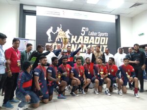 شهدت منافسات بطولة الكبادي نجاحًا كبيرًا ومشاركة واسعة ضمن فعاليات النسخة الخامسة من “الدورة الرياضية العمالية” الأكبر من نوعها التي نظمها مجلس دبي الرياضي بالتعاون مع اللجنة الدائمة لشؤون العمال بدبي وشرطة دبي، وتقام تحت شعار “إسعادهم هدفنا” على مختلف الملاعب في دبي، وتستمر حتى 13 مارس 2024، وتتضمن 11 ألعاب رياضية هي: كرة السلة، كرة القدم، سباق الجري، مصارعة الذراعين، الريشة الطائرة، الكرة الطائرة، سباحة، شد الحبل، اليوغا، الكريكت، ورياضة الكبادي.