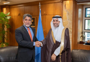 كما التقى معاليه أثناء الاجتماعات المدير الإقليمي لمكتب منظمة الصحة العالمية لشرق المتوسط الدكتور أحمد المنظري، وتم خلال اللقاء بحث أهم التحديات الصحية التي تواجه دول إقليم شرق المتوسط وسبل الحد منها والتغلب عليها، لتحقيق مستقبل أفضل صحةً وضمان حياةٍ أفضل للأجيال المقبلة من خلال العمل على تعزيز الصحة المستدامة في دول إقليم شرق المتوسط، وفي ختام اللقاء قدم معاليه شكره للدكتور المنظري على جهوده خلال فترة عمله مديراً إقليميًا لمكتب منظمة الصحة العالمية لشرق إقليم المتوسط .