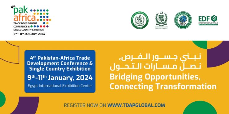 تعلن حكومة باكستان بكل فخر عن إطلاق مؤتمر تنمية التجارة الباكستانية الإفريقية الرابع ومعرض الدولة الموحد المقرر عقدهما من 9 إلى 11 يناير 2024، وسيتم استفاضة هذا الحدث الضخم والمرتقب في مركز مصر الدولي للمعارض والمؤتمرات. تجدر الإشارة إنّها المرة الأولى التي تنظم فيها باكستان فعالية مشتركة للحكومات والأعمال التجارية في مصر. ويذكر أن المؤتمر في دوراته الثلاث السابقة نُظم في كينيا ونيجيريا وجنوب إفريقيا.