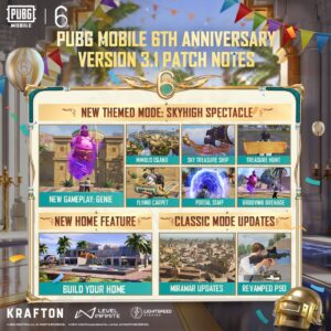 ويشمل تحديث ببجي موبايل بوابات للانتقال التكتيكي بين المواقع المحددة مسبقاً، مما يتيح الهروب السريع أو الترصُّد للأعداء الغافلين، بينما قد يواجه اللاعبون “الجني” في مناطق معينة ويستمتعون بتفاعلات رائعة مع العروض والكنوز، بالإضافة إلى عناصر خيالية جديدة مثل قنبلة الجني Genie Grenade)) التي ستضيف لمسة سحرية إلى طريقة اللعب وستوفر درعاً وقائياً ضد نيران العدو عند رميها.