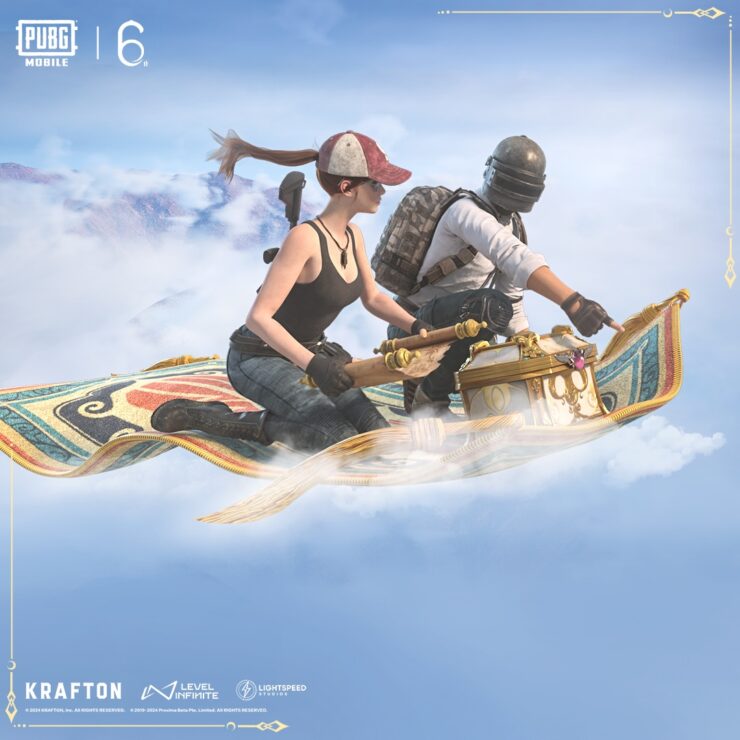 وستنضم إلى التحديثات البارزة الجديدة السجادة الطائرة (Flying Carpet)، وهي مركبة جديدة كلياً تشمل مقعدين يمكنك التنقل بها بين تضاريس خريطة Erangel أو حتى الطيران بسرعات عالية؛ مما يسمح بالسباقات السلسة وتنفيذ تكتيكات هجومية متنوعة. وسيكون لدى اللاعبين القدرة على استدعاء السجادة أو إطلاقها وفقاً لرغبتهم، ويمكنهم أداء الحركات التعبيرية بالقرب منها، علماً بأن السجادة يمكنها تقليد حركاتهم!