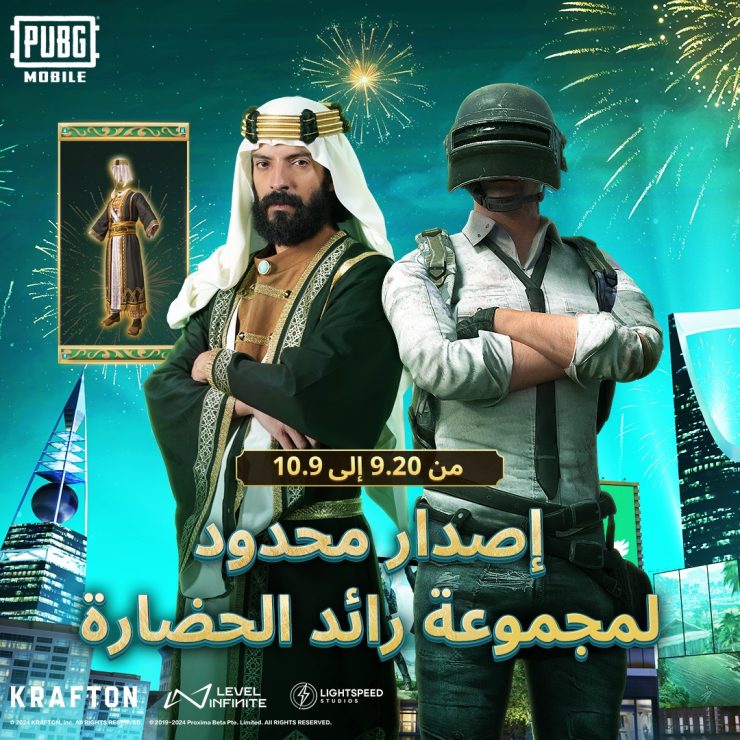 كما أطلقت ببجي موبايل مجموعة ملابس حصرية داخل اللعبة بإلهامٍ من الثقافة السعودية الأصيلة، تتيح للاعبين استعراض شخصياتهم في ثوبٍ فريد تم تصميمه خصيصاً للاحتفال باليوم الوطني. وبالإضافة إلى ذلك، أصدرت ببجي موبايل رقصة العرضة، وهي رقصة سعودية تقليدية تُؤدى باستخدام السيف، ما يمنح اللاعبين فرصة التفاعل مع التراث الثقافي للمملكة بطريقة تجمع بين التقاليد الأصيلة وتجارب الترفيه المعاصرة.