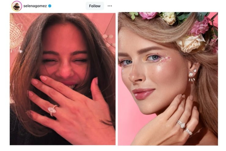 أعلنت النجمة العالمية سيلينا غوميز عن خطبتها وكشفت عن خاتمها المذهل الذي أسر قلوب معجبيها وعشاق المجوهرات في جميع أنحاء العالم. يتميز خاتم الخطبة بقطعة ألماس طويلة ذات شكل متماثل بقَصّة الماركيز (Marquise) التي تُزيد من جماله وبريقه، وهو يشبه إلى حدٍ كبير خاتم الألماس الرائعAmna من علامة المجوهرات المستدامة الشهيرة Etika Jewels.
