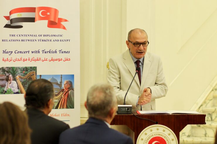 أُقيم حفل موسيقي على القيثارة في السفارة التركية بالقاهرة احتفالاً بالذكرى المئوية لتأسيس العلاقات الدبلوماسية بين تركيا ومصر.