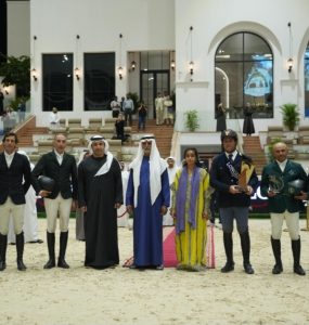 توج معالي الشيخ نهيان بن مبارك آل نهيان الفائز بالفئة النهائية لليوم الثالث في كأس أكاديمية فاطمة بنت مبارك الدولية لقفز الحواجز